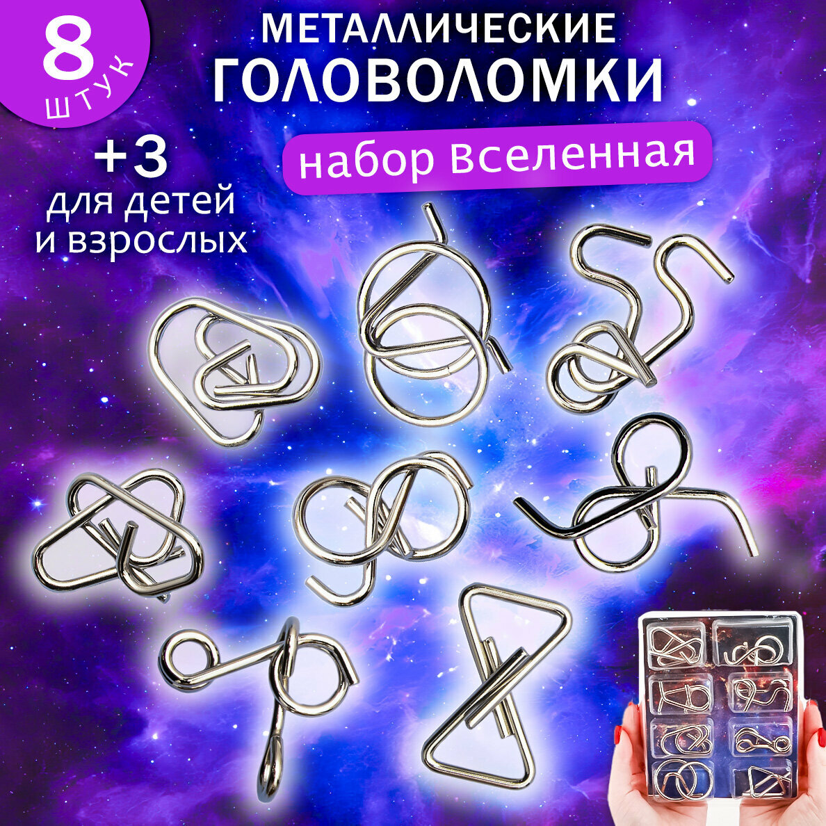 Набор Головоломки металлические "Галактика" N 1/3, подарочный набор из 8 шт. для детей и взрослых