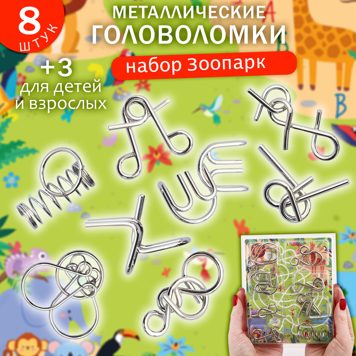 Набор Головоломки металлические "Зоопарк" N 3/3, подарочный набор из 8 шт. для детей и взрослых