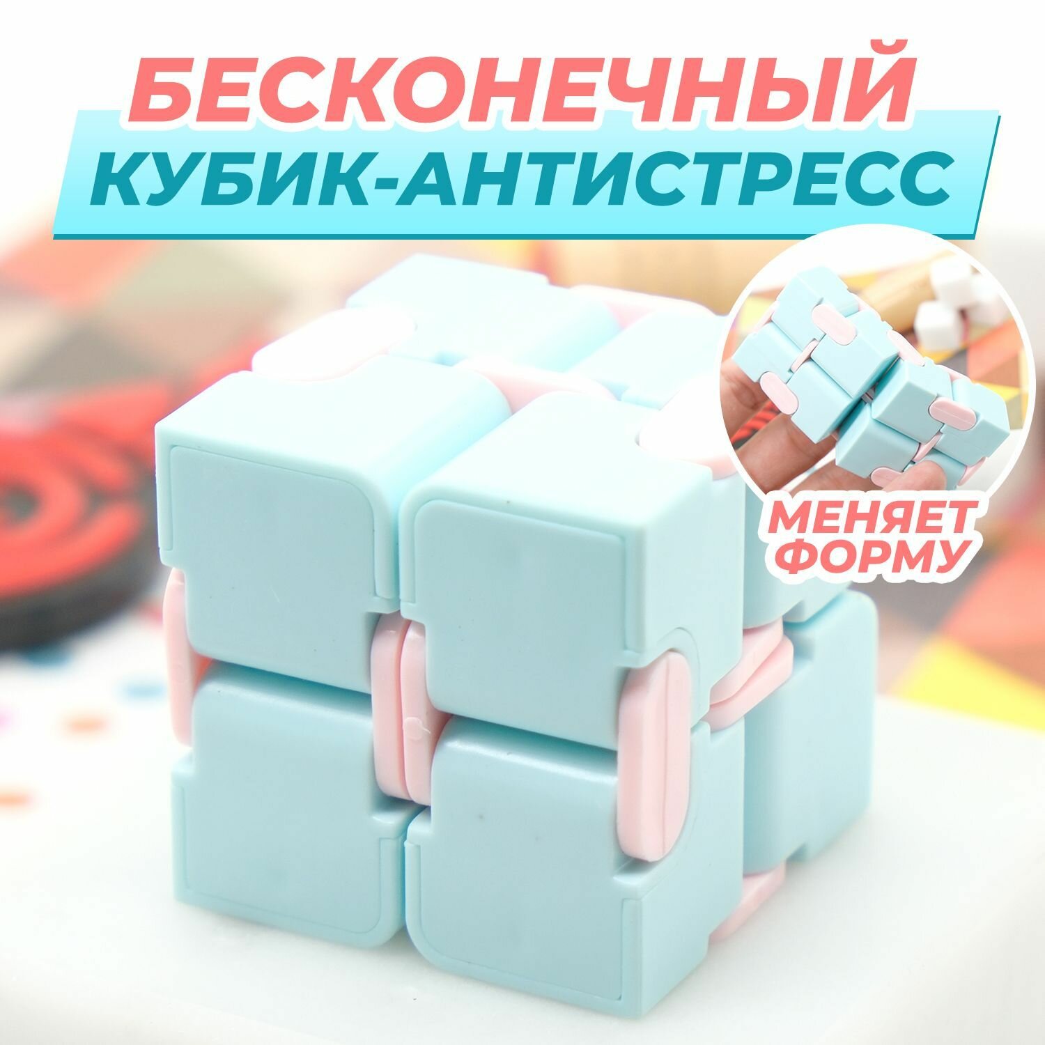 Головоломка Кубик Infinity Fidget Cube / Бесконечный антистресс куб / голубой интересное: