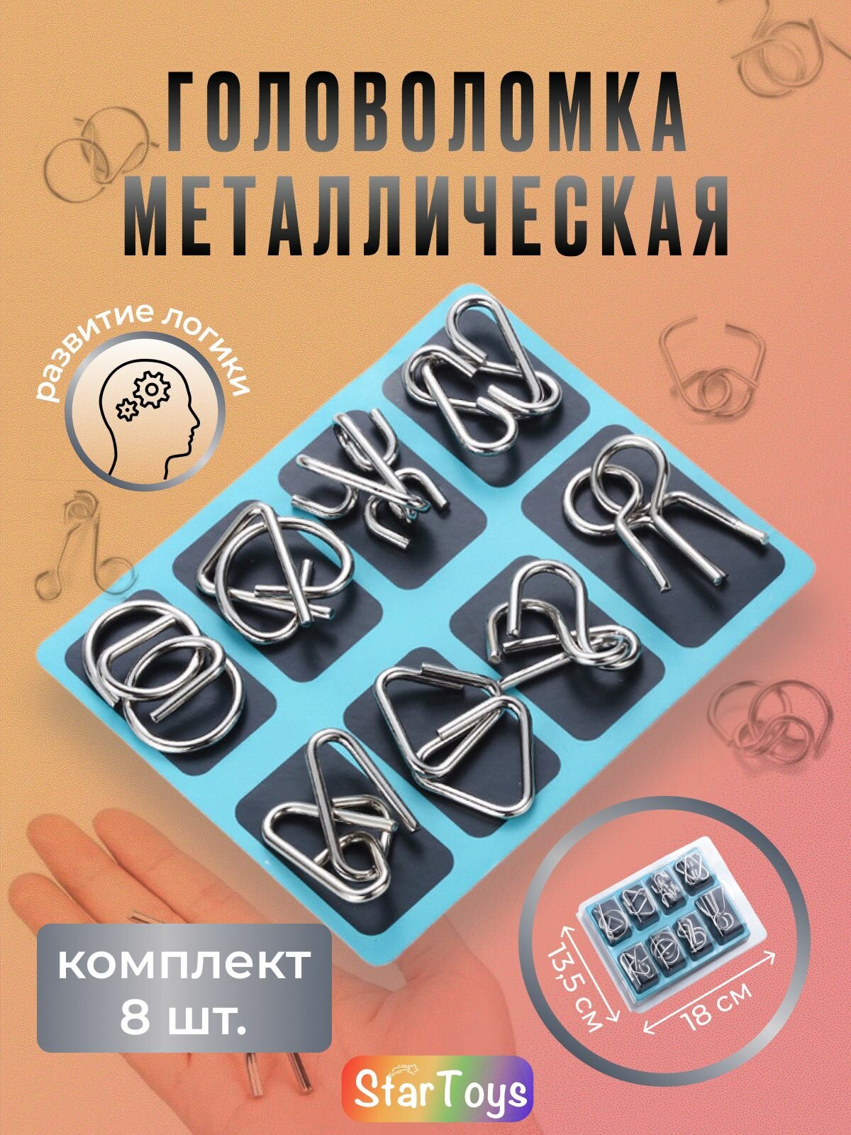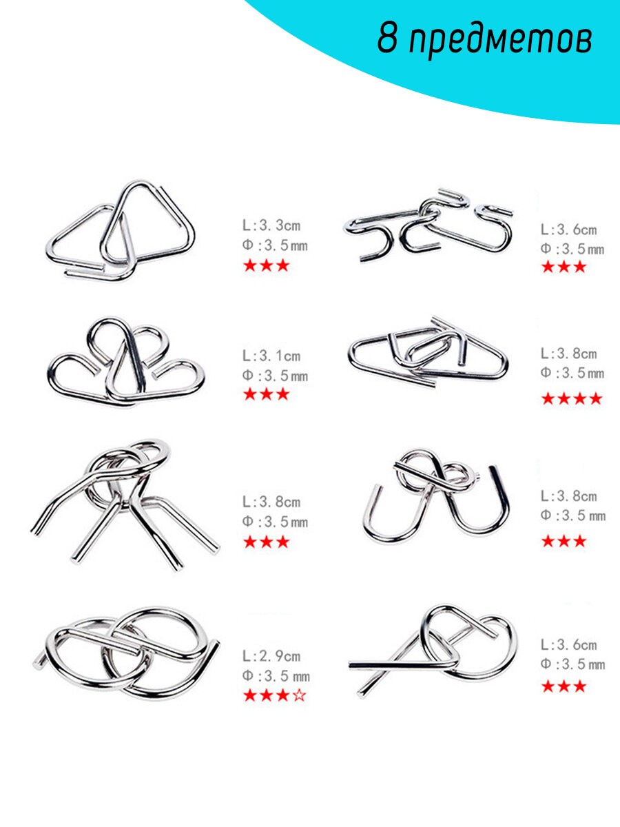 | Комплектация | головоломка набор металлических пазлов 8 шт |