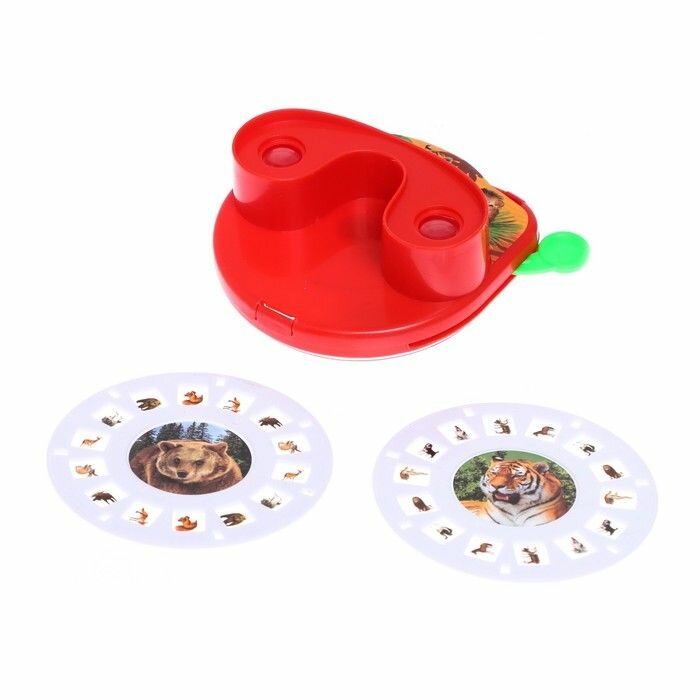 Купить Детский проектор "Весёлые зверята" для показа слайдов, 2 слайда по 14 картинок, цвета микс