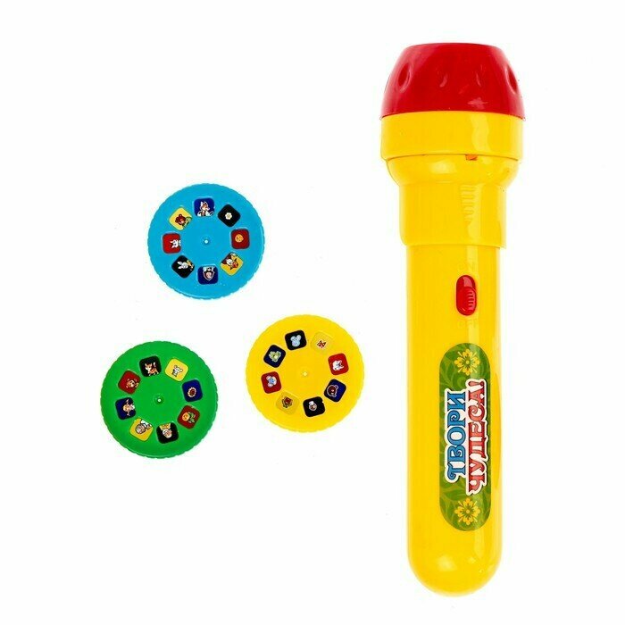 Купить Детский проектор-фонарик "Любимые сказки" для просмотра слайдов и рисования, диапроектор, в наборе 3 слайда по 8 картинок