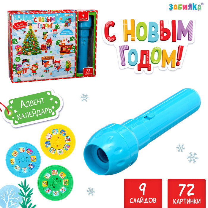 Купить Адвент-календарь «С Новым годом!», с проектором-фонариком, 9 слайдов, световые эффекты