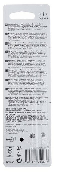 Parker Ручка шариковая PARKER IM CORE DARK ESPRESSO CT, синяя, блистер 1975561