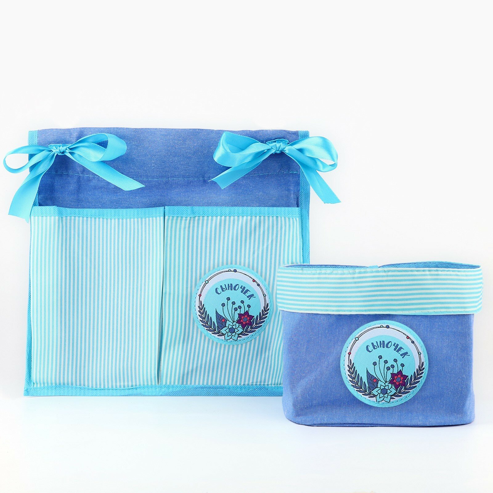 Купить Органайзер для хранения вещей на детскую кроватку 2 отделенияи настольная корзинка «Лучший в мире малыш»