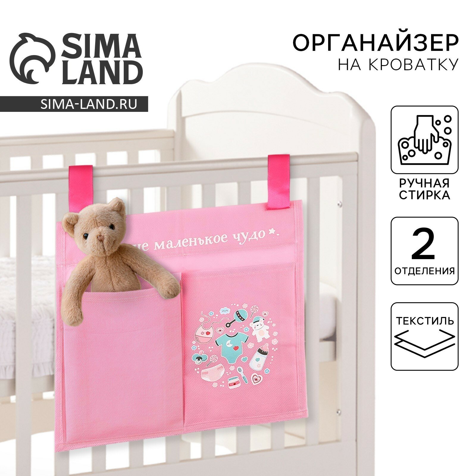 Купить Органайзер для хранения вещей на детскую кроватку «Наше маленькое чудо» для девочки, 2 отделения