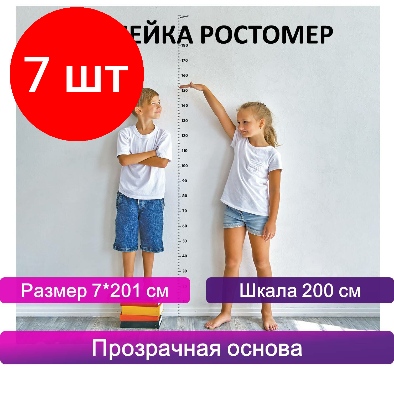 СохранитьКомплект 7 шт, Ростомер универсальный, шкала 200 см, размер 7х201 см, прозрачная основа, юнландия, 664692 интересное: