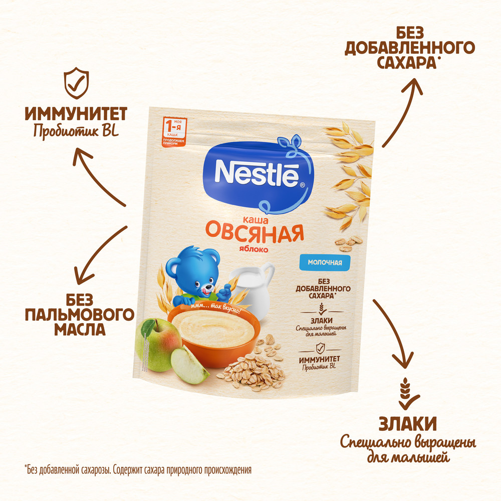 Каша овсяная NESTLE молочная, с яблоком, с 5 месяцев, 200г интересное:
