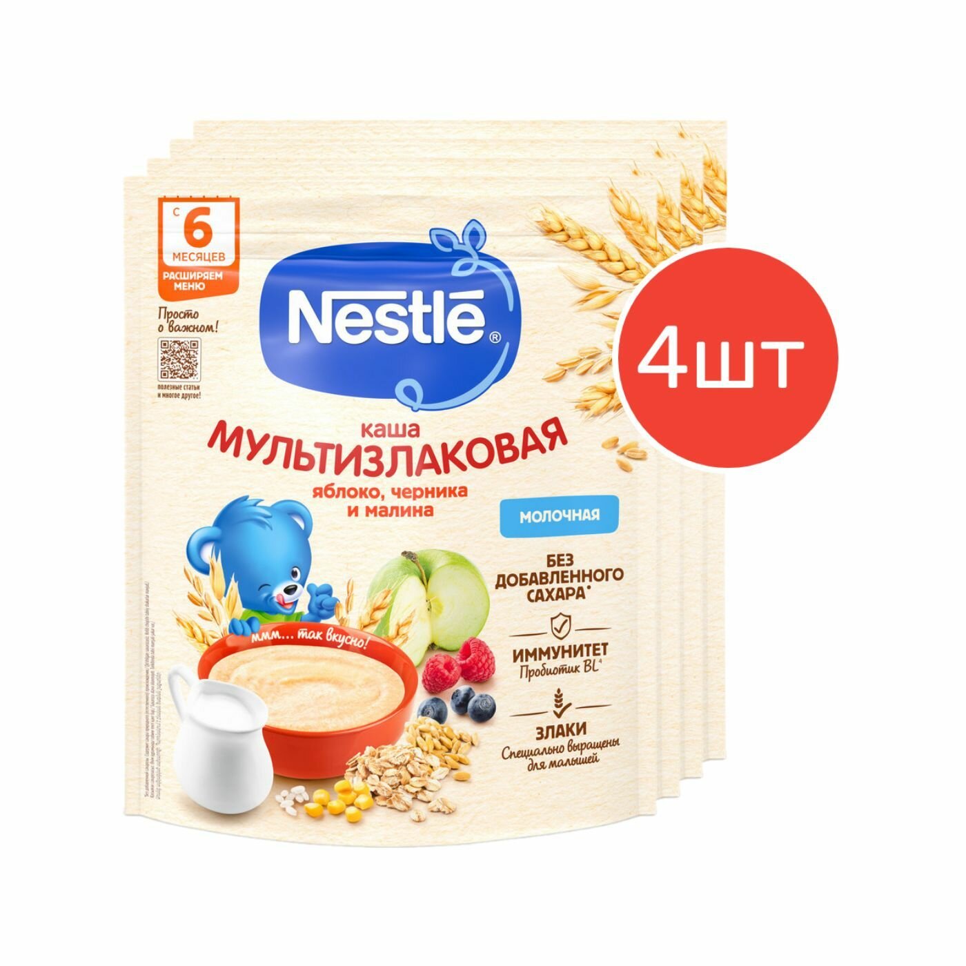 Каша молочная Nestle мультизлаковая с яблоком, черникой и малиной с 6 месяцев 200 г 4 шт интересное: