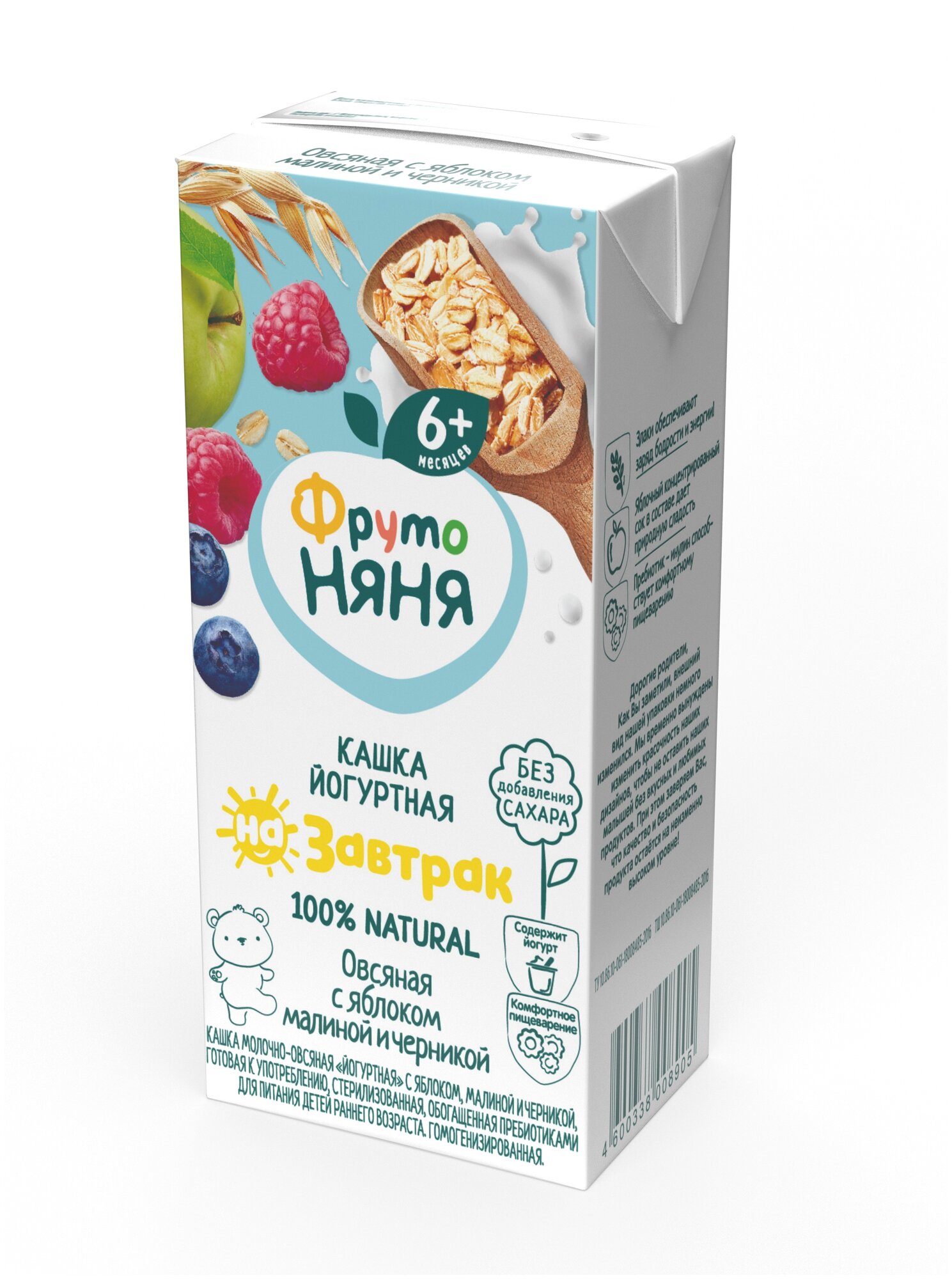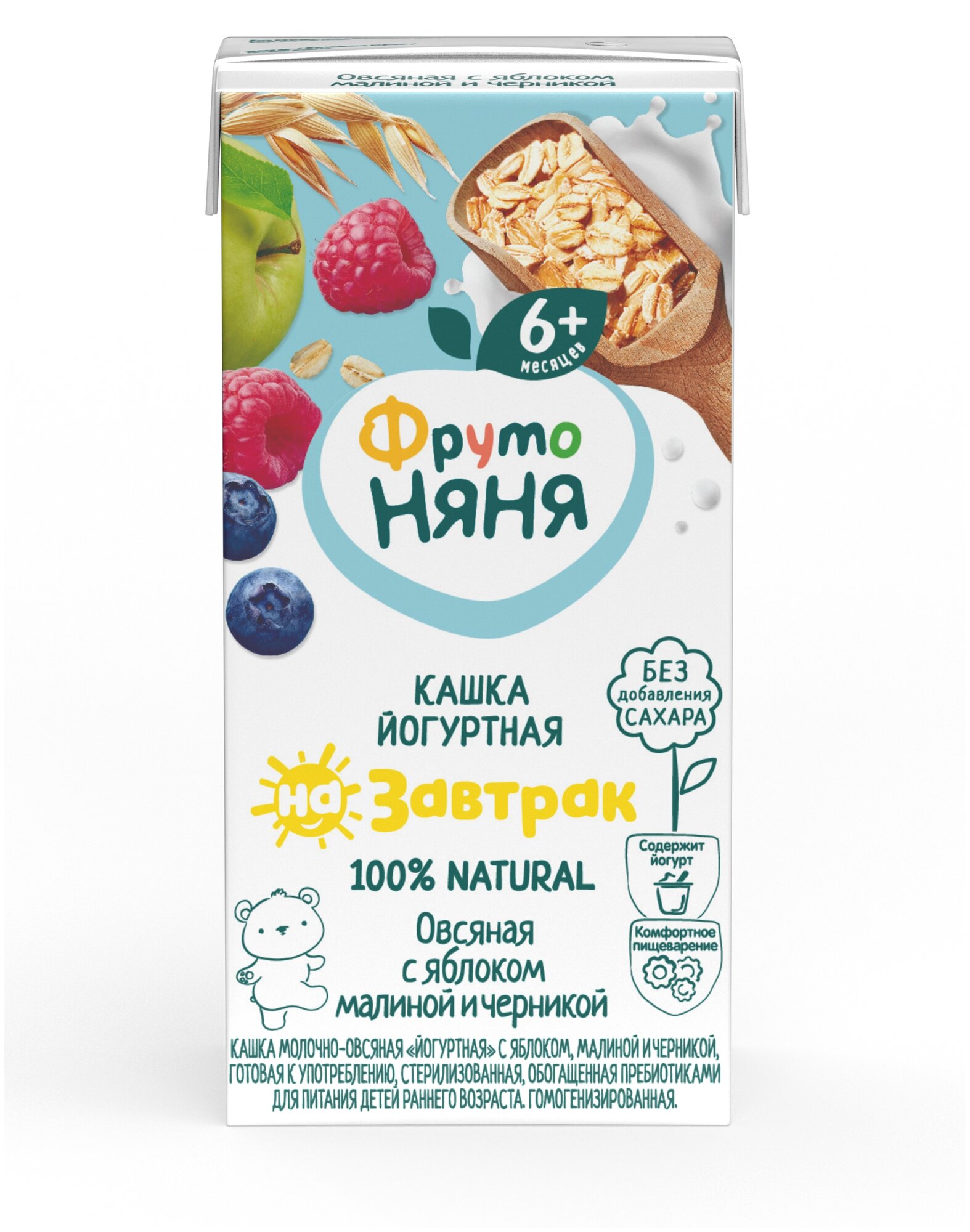 Каша ФрутоНяня йогуртная овсяная, яблоко, малина, черника, с 6 месяцев, 200 мл, 18 шт.