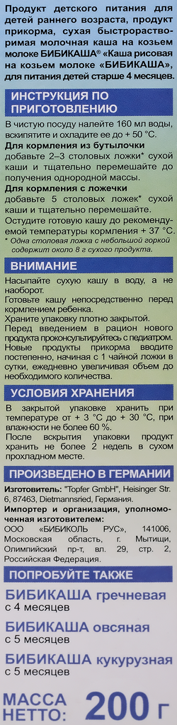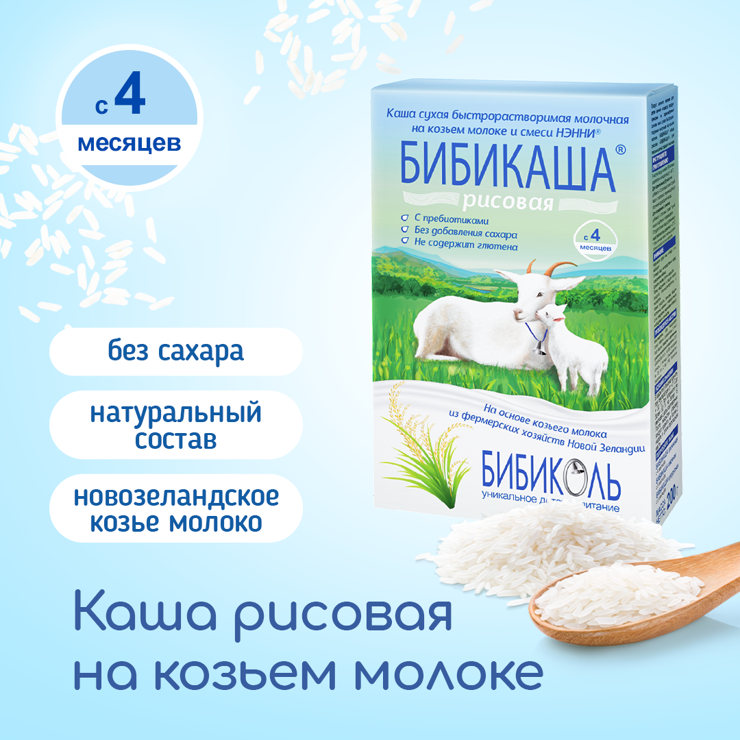 Каша рисовая бибикаша молочная, на козьем молоке с пребиотиками, с 4 месяцев, 200г интересное:
