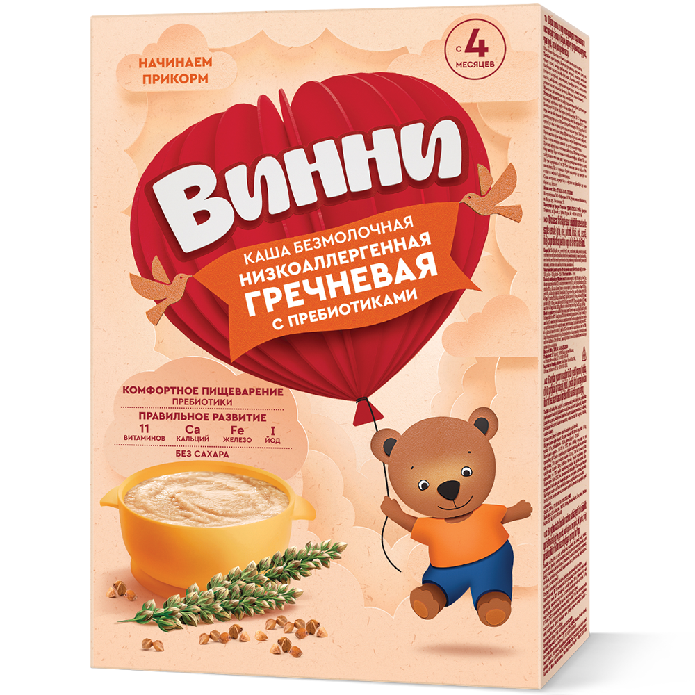 Винни Каша б/м Гречневая Низкоаллергенная с Пребиотиками {с 4 мес} 200г интересное: