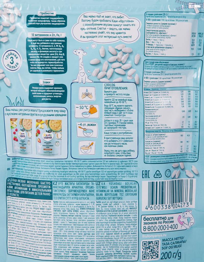 ФрутоНяня Каша Рис с Молоком {с 4 мес} 200г интересное: