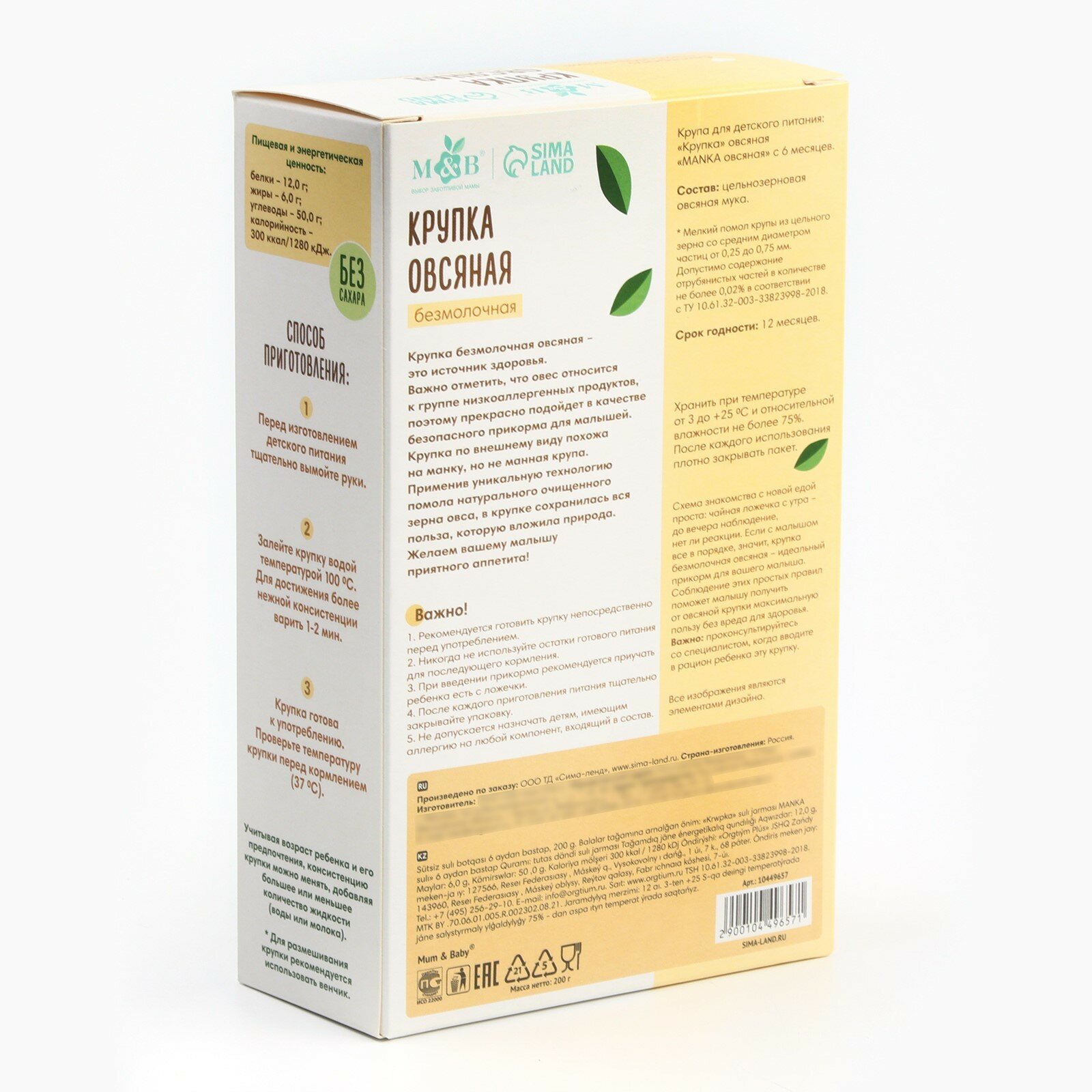 Каша овсяная M&B безмолочная, без глютена, с 6 месяцев, 200 г. интересное: