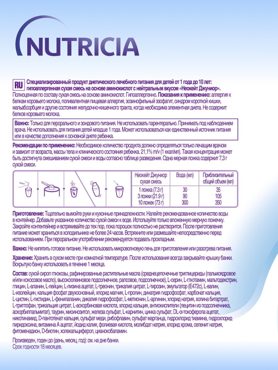 Детская Смесь Neocate (Nutricia) Junior Ваниль, от 1 года, 400 г, лечебная, для кормления детей интересное: