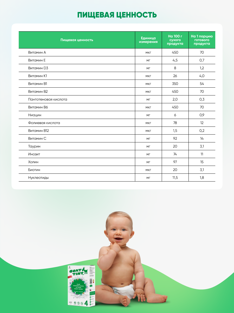 GOATINY 4 Сухой молочный напиток на основе цельного козьего молока для детей от 18 месяцев 400 г интересное: