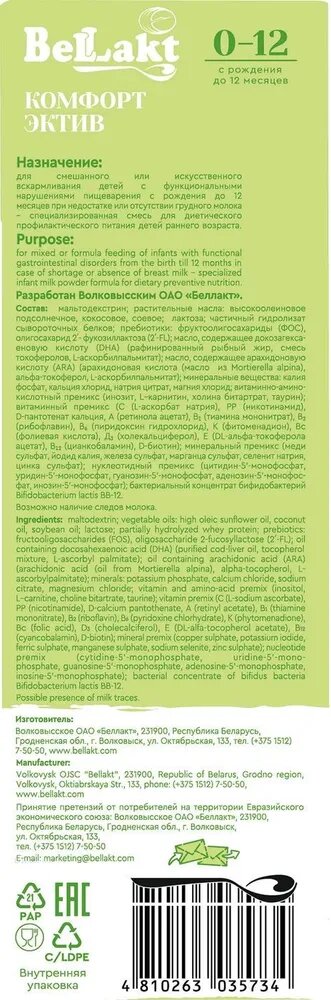 Смесь Беллакт Комфорт Active, с рождения до 12 месяцев, 350 г интересное: