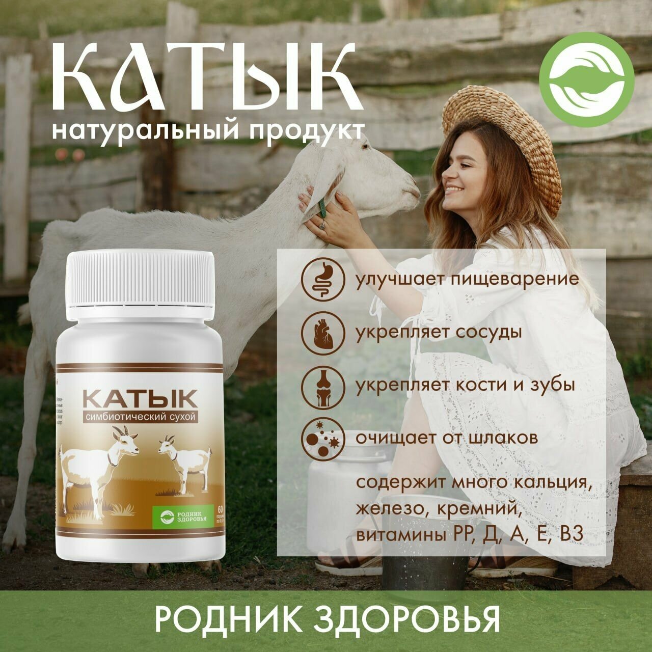 | Состав | Состав: молоко сухое козье, молоко сухое обезжиренное, сыворотка сухая молочная, заквасочные микроорганизмы (Lactobacillus acidophilus, Lactococcus lactis subsp. lactis, Lactococcus lactis subsp. lactis biovar diacetylactis, Leuconostoc, Lactobacillus delbrueckii subsp. Bulgaricus, Streptococcus thermophilus). |
