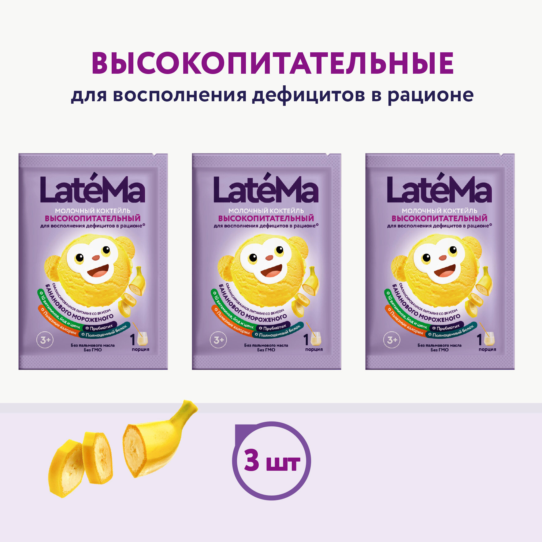 Купить Молочная смесь для приготовления коктейля LateMa высокопитательная (для набора и поддержания веса) со вкусом бананового мороженого 3 шт.