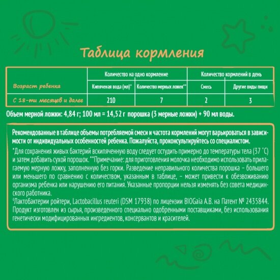 | Содержит | пребиотики |
