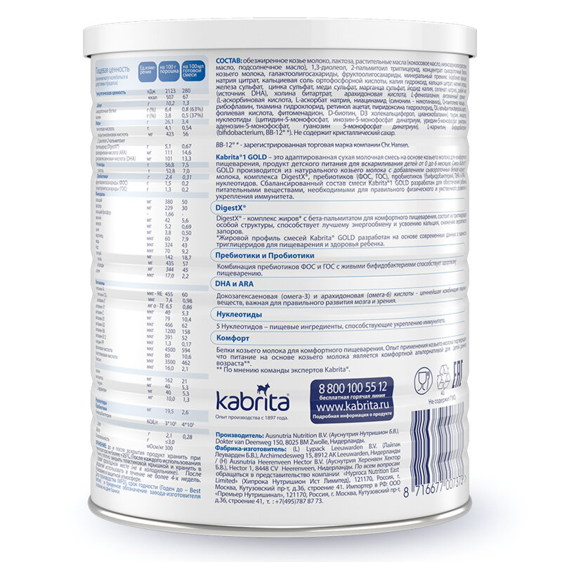 | Содержит | бифидобактерии / козье молоко / пребиотики / пробиотики |