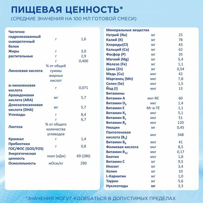 | Плюсы: | Отличная смесь, которая подошла нам с первого раза, Не вызвала аллергию и Пришлась по вкусу молодому человеку. Здорово, что есть возможно взять на Маркетплейсах дешевле чем в аптеке большие упаковки. Отлично сочеталась с грудным молоком, Была рекомендовано нашим педиатром |