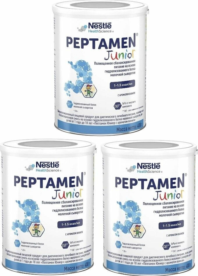 Купить Смесь Peptamen Junior (Nestle), c 1 года, комплект 3 шт. Срок годности 2025-2026гг.