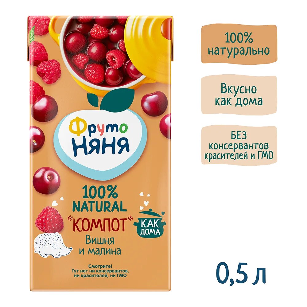 Компот ФрутоНяня из вишни и малины от 3 лет 0,5 л 12 шт интересное:
