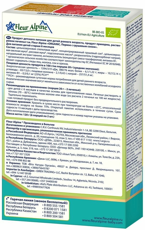 Купить Печенье детское Fleur Alpine С Грушевым соком, с 6 месяцев, 120 г