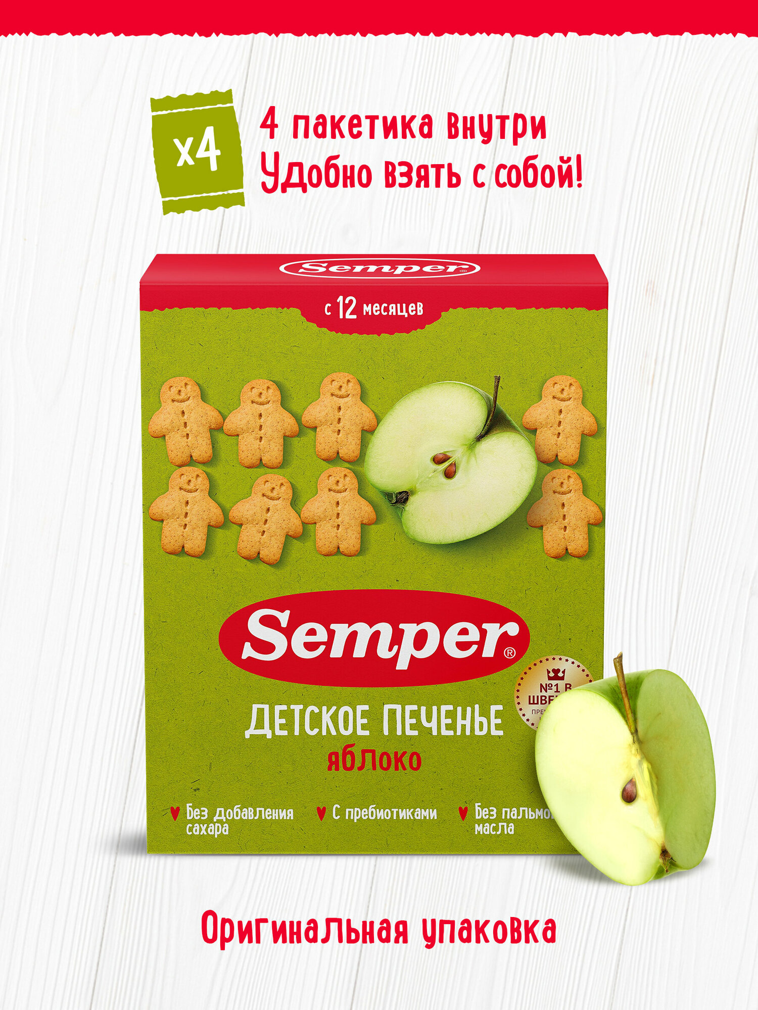 Купить Печенье детское Semper с 12 месяцев, яблоко, без сахара, 80 г