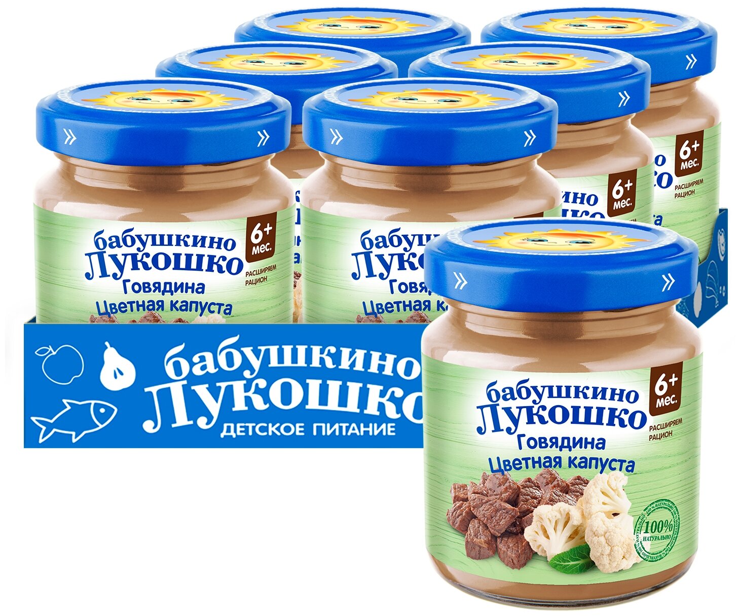 Купить Спайка Пюре Бабушкино Лукошко Цветная капуста с говядиной 100 г/6 шт