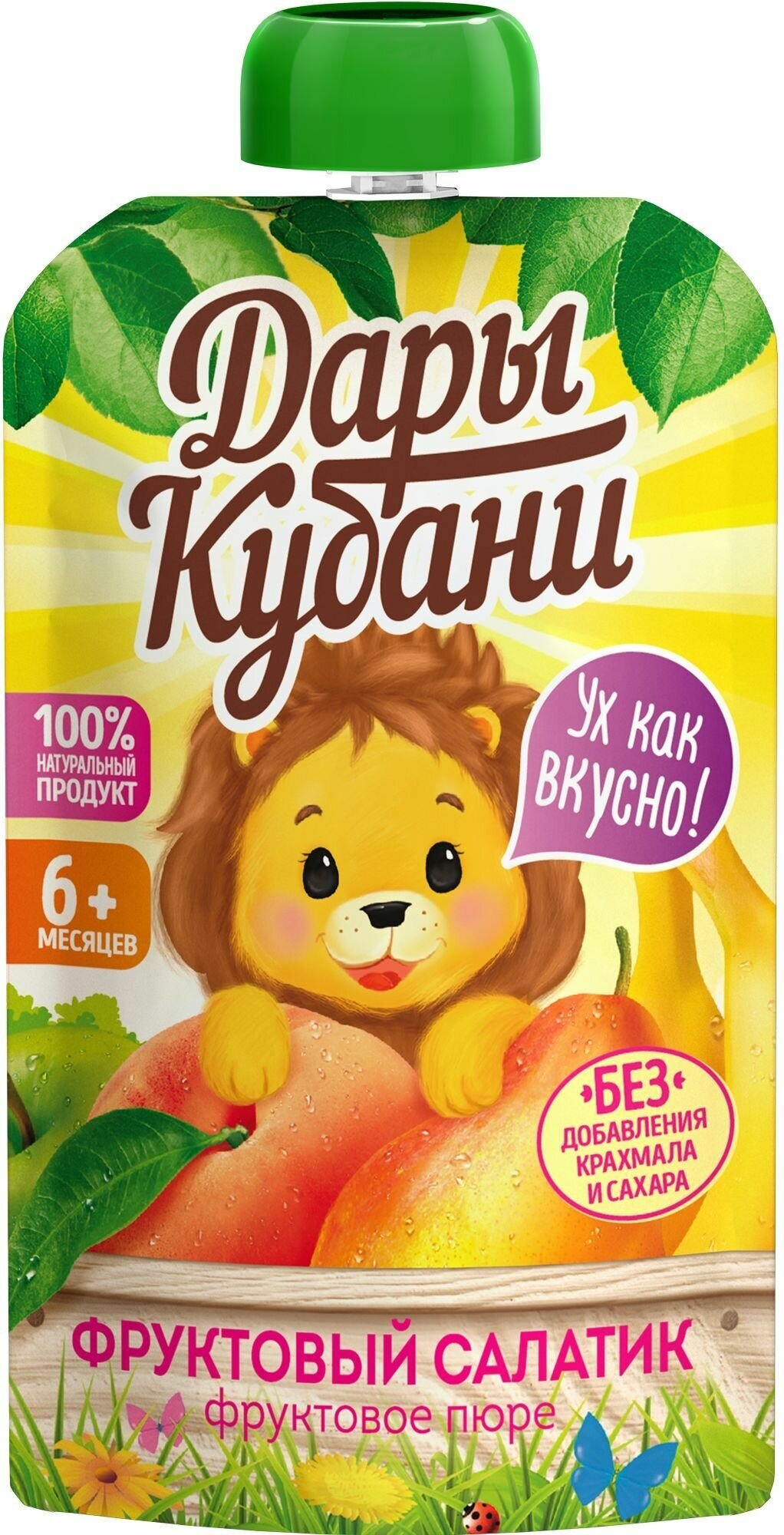 Детское пюре Дары Кубани из бананов, груши, яблока и персика, без сахара, для питания детей с 6 месяцев, 90 г х 12 шт. интересное: