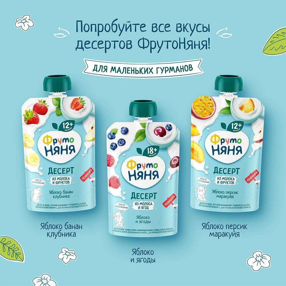 спайка Десерт ФрутоНяня из яблок, бананов и клубники с молоком и сахаром 90г. (12 шт) с 12 месяцев, с молоком и сахаром интересное: