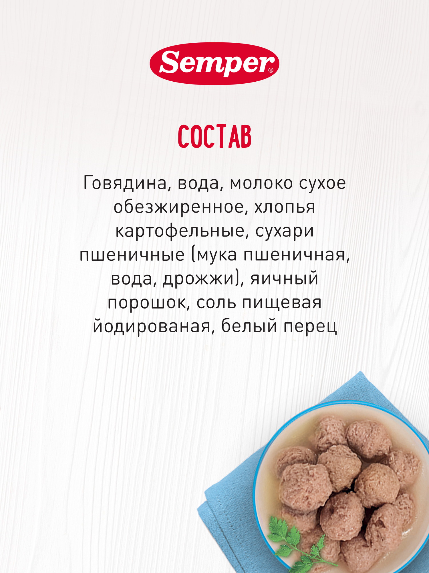 Пюре мясное детское Semper с 8 месяцев, Фрикадельки Говядина, 100 г интересное:
