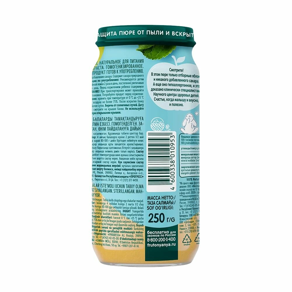 Пюре фруктовое ФрутоНяня с 4 месяцев, яблоко, 250 г, 6 шт интересное: