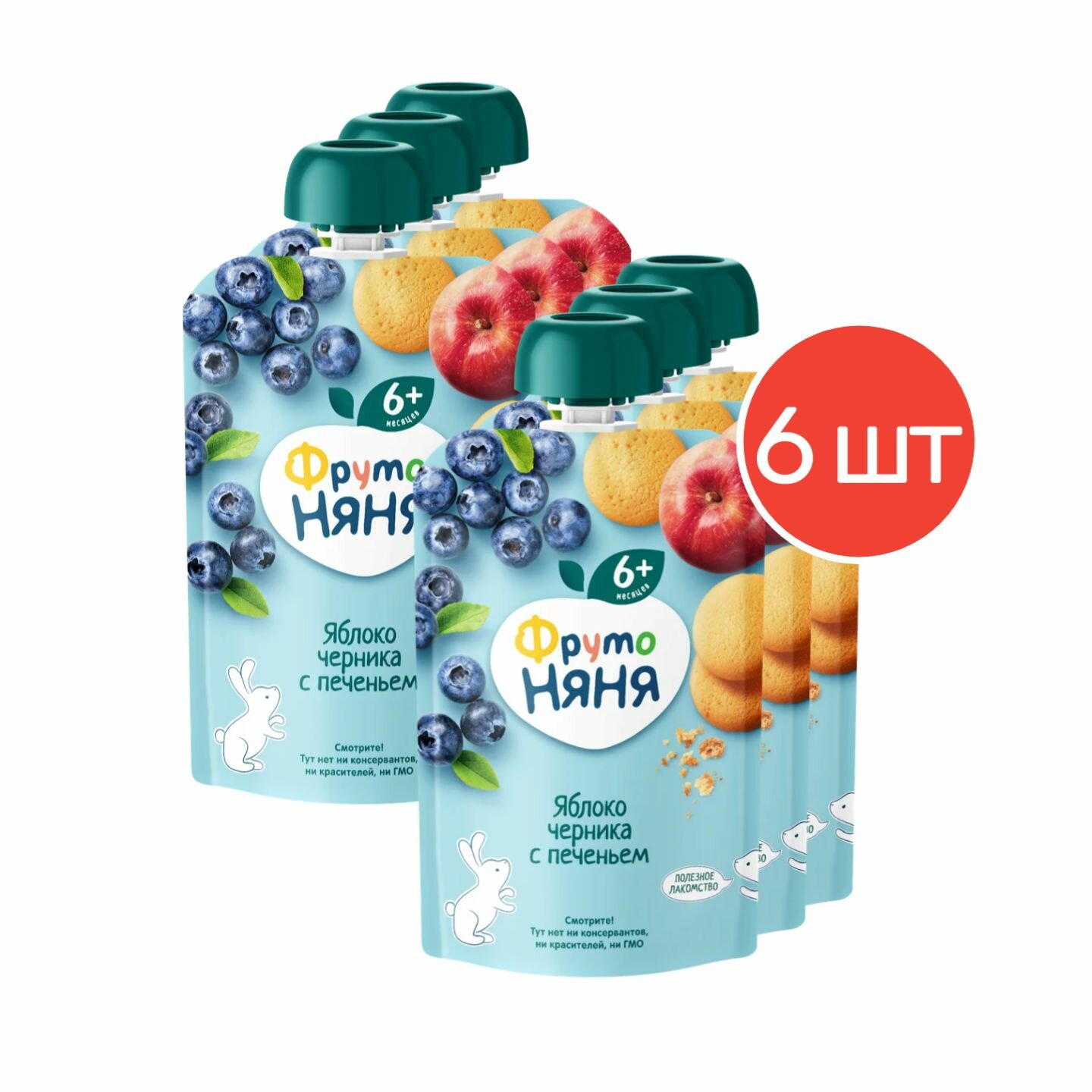 Купить Пюре ФрутоНяня из яблок и черники с печеньем 90г с 6 месяцев, 6 шт