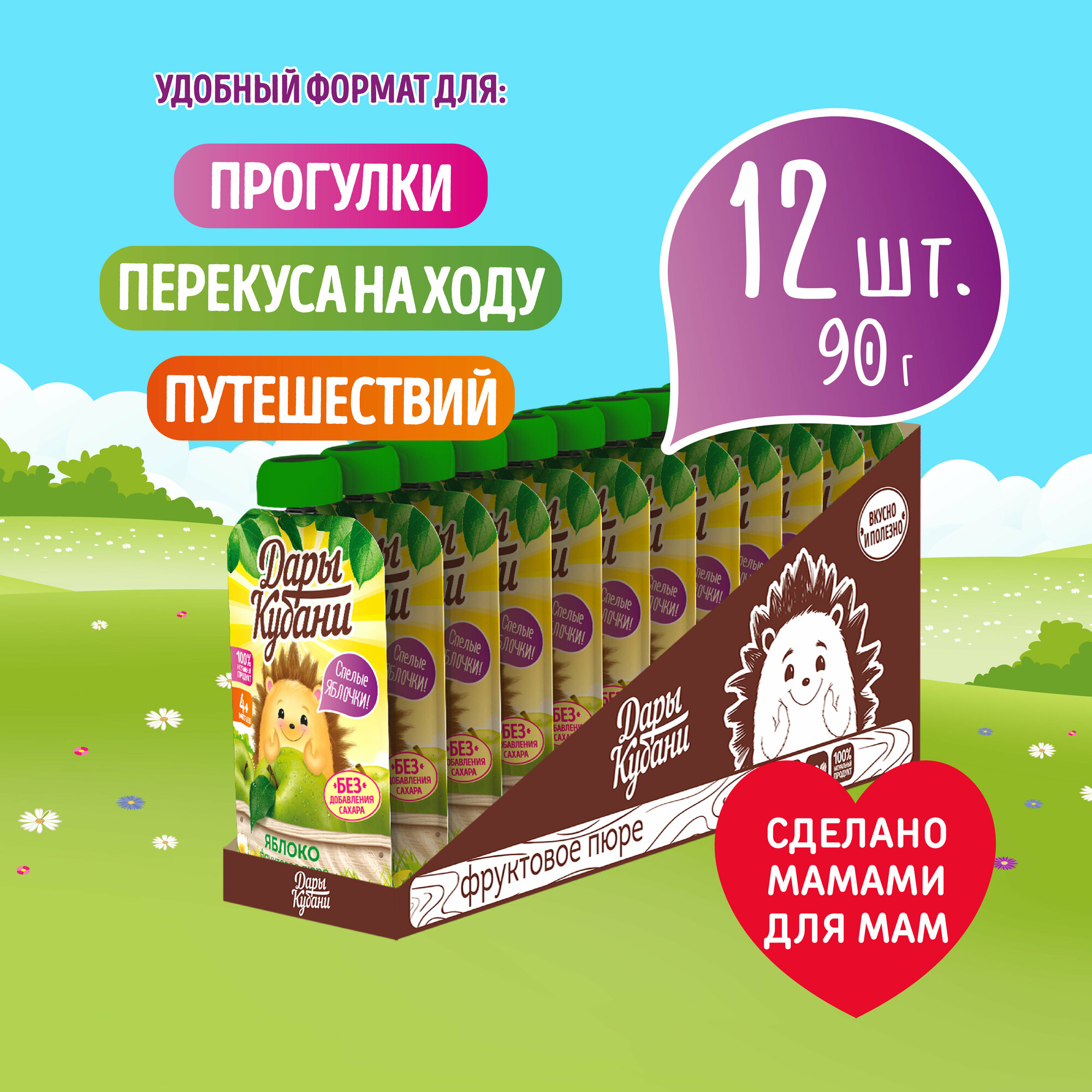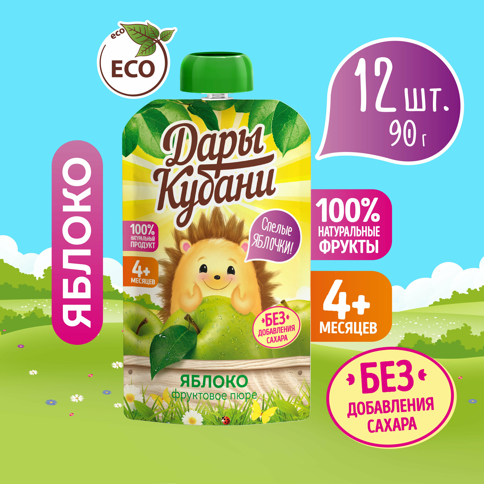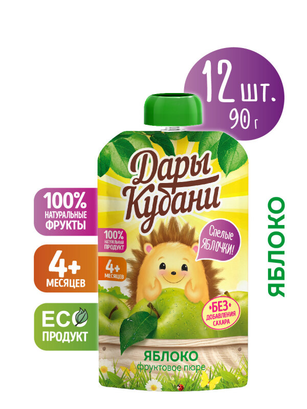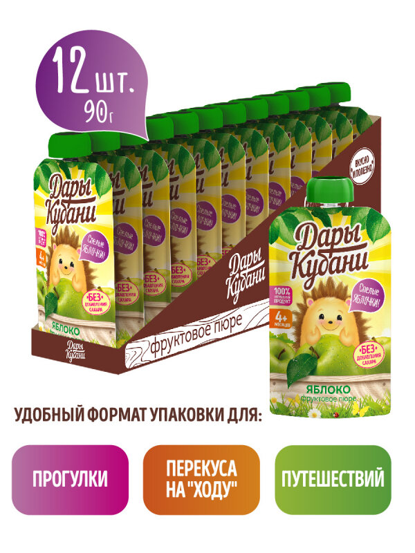 Купить Детское яблочное пюре Дары Кубани, без сахара, для питания детей с 4 месяцев, 90 г х 12 шт.