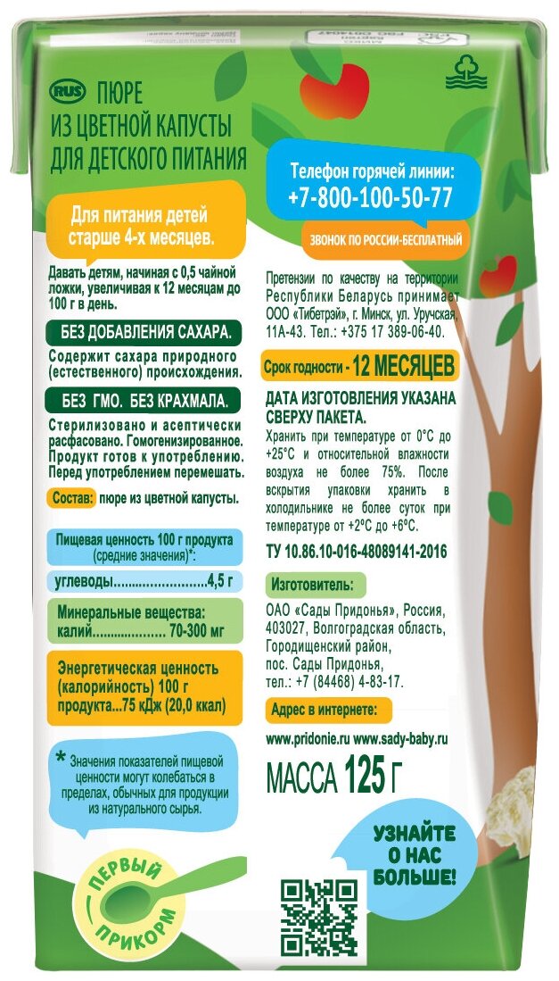 Ниже Вы можете прочитать отзывы на Детское пюре "Сады Придонья" цветная капуста пак 125г, ознакомится с подробными характеристиками, посмотреть интересные обзоры и фотографии на Детское пюре "Сады Придонья" цветная капуста пак 125г.