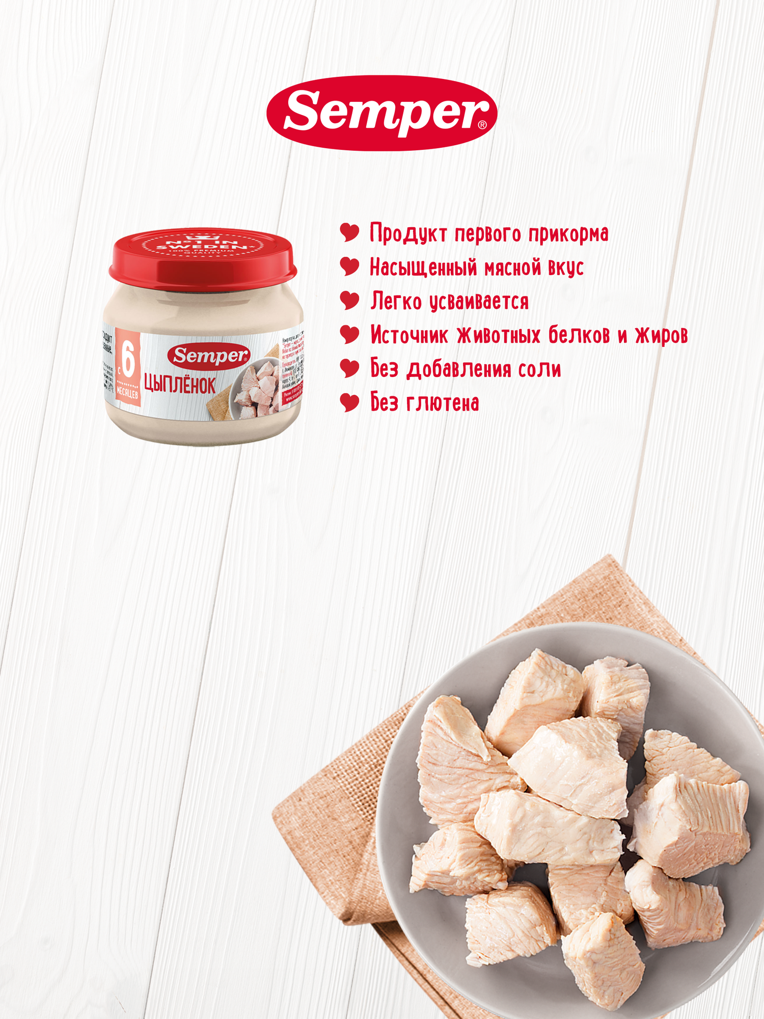 Купить Semper - пюре моно мясо Цыпленок, 6 мес., 80 гр