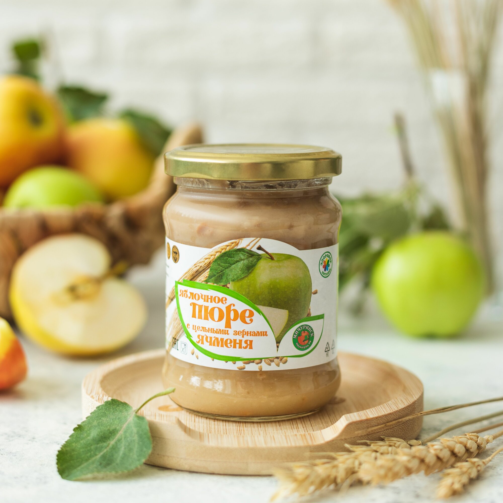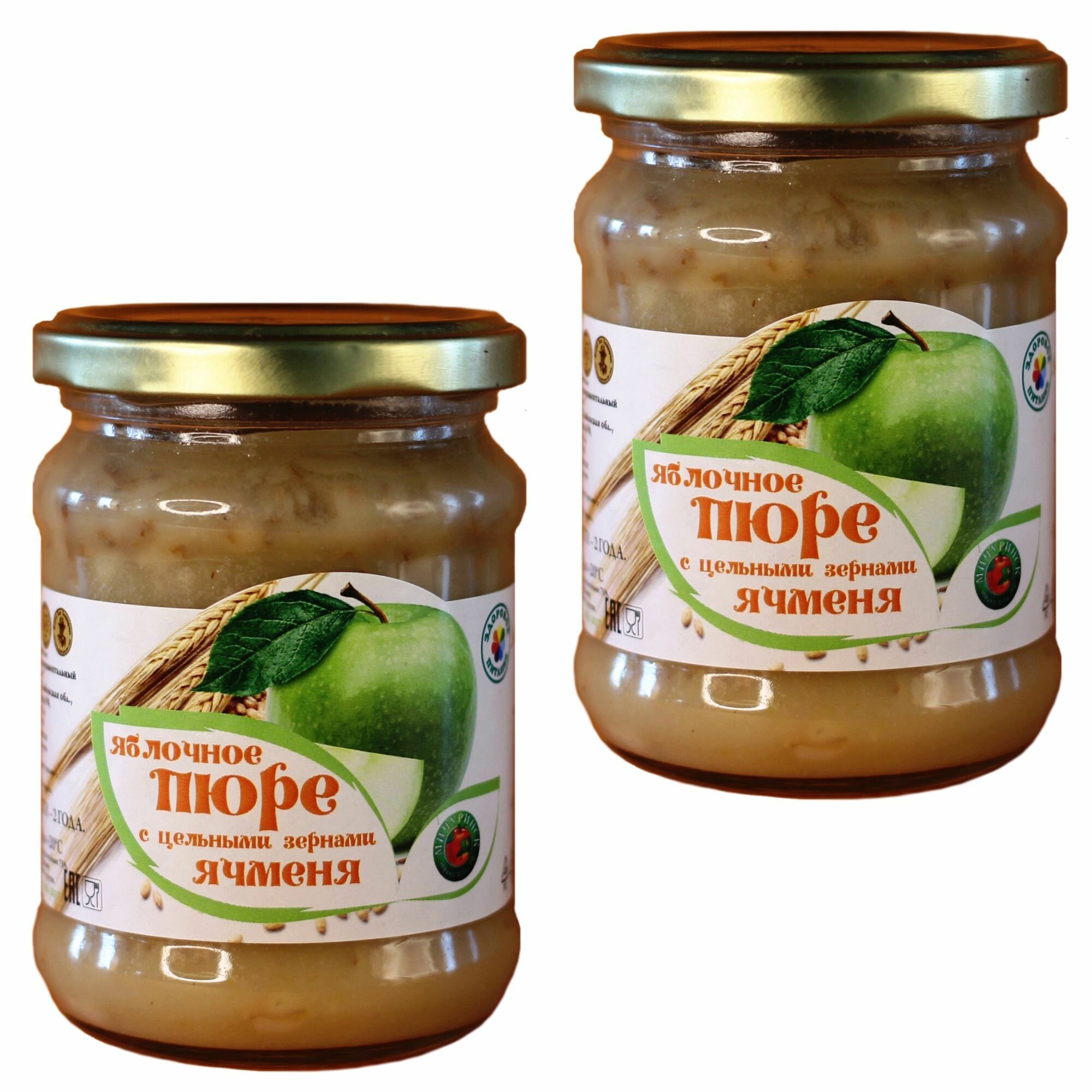 Яблочное пюре с цельными зернами ячменя Мичуринское. Набор 2 банки по 260 г интересное: