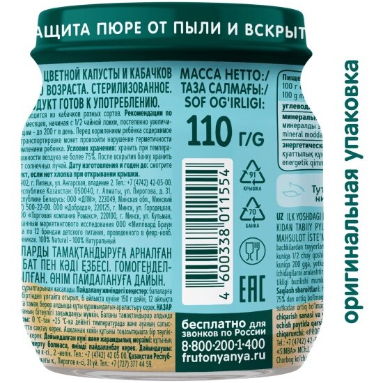 Пюре Фрутоняня из цветной капусты и кабачков с 5 мес 110 г (12 шт в упаковке) интересное: