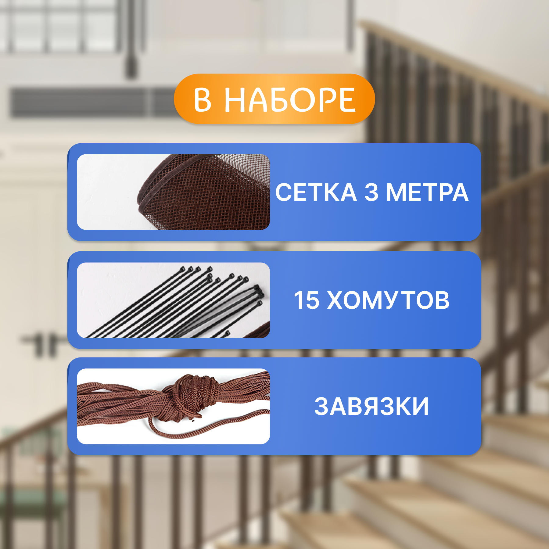 | Комплектация | сетка 3 метра, завязок 25 шт, стяжек 15 шт. |