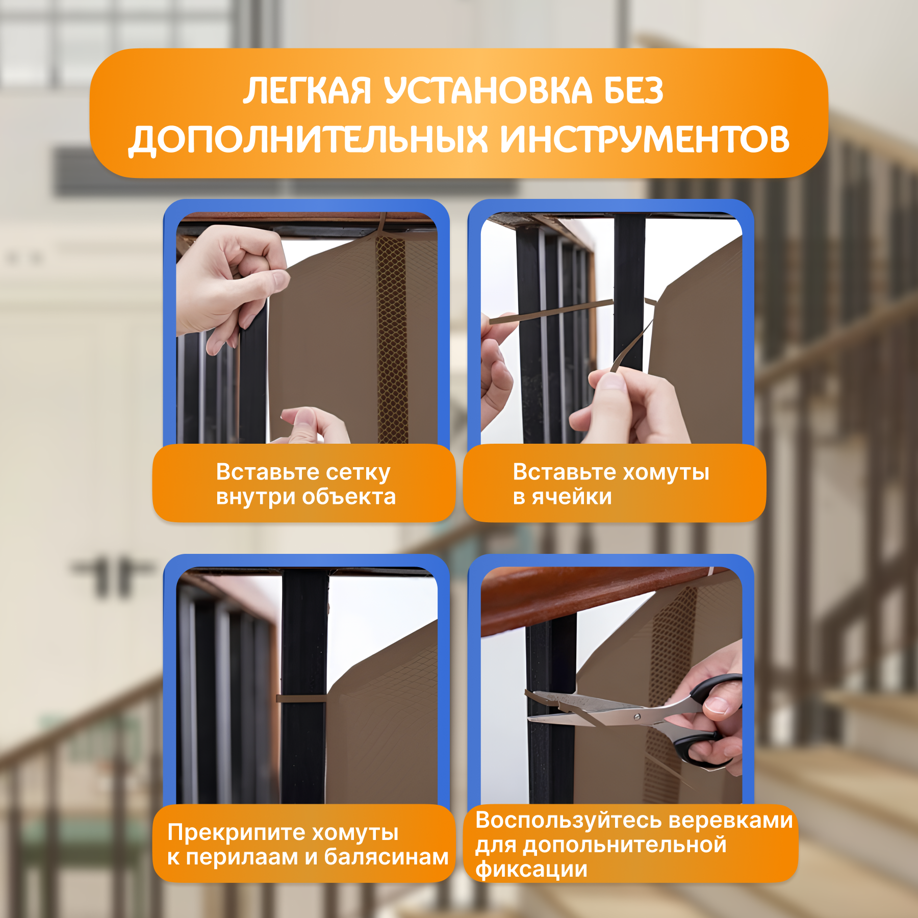 Защитный барьер, Защитная сетка ограждение для лестницы от падений, черный, 3м