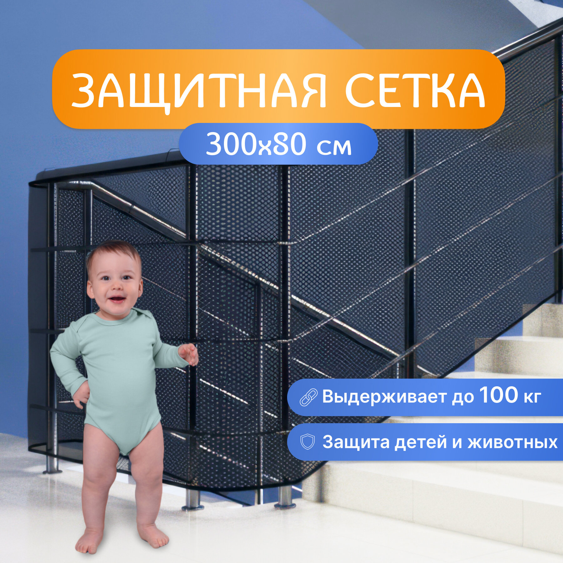 Защитный барьер, Защитная сетка ограждение для лестницы от падений, черный, 3м