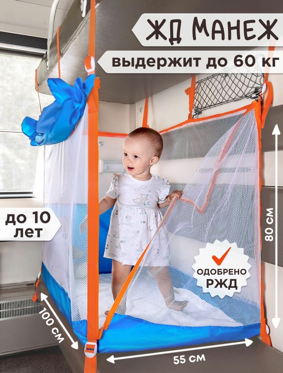 Детский манеж для поезда. Сетка бортик ограждение для детей 0+. Защитный барьер в жд путешествие, 4 стороны и шторка