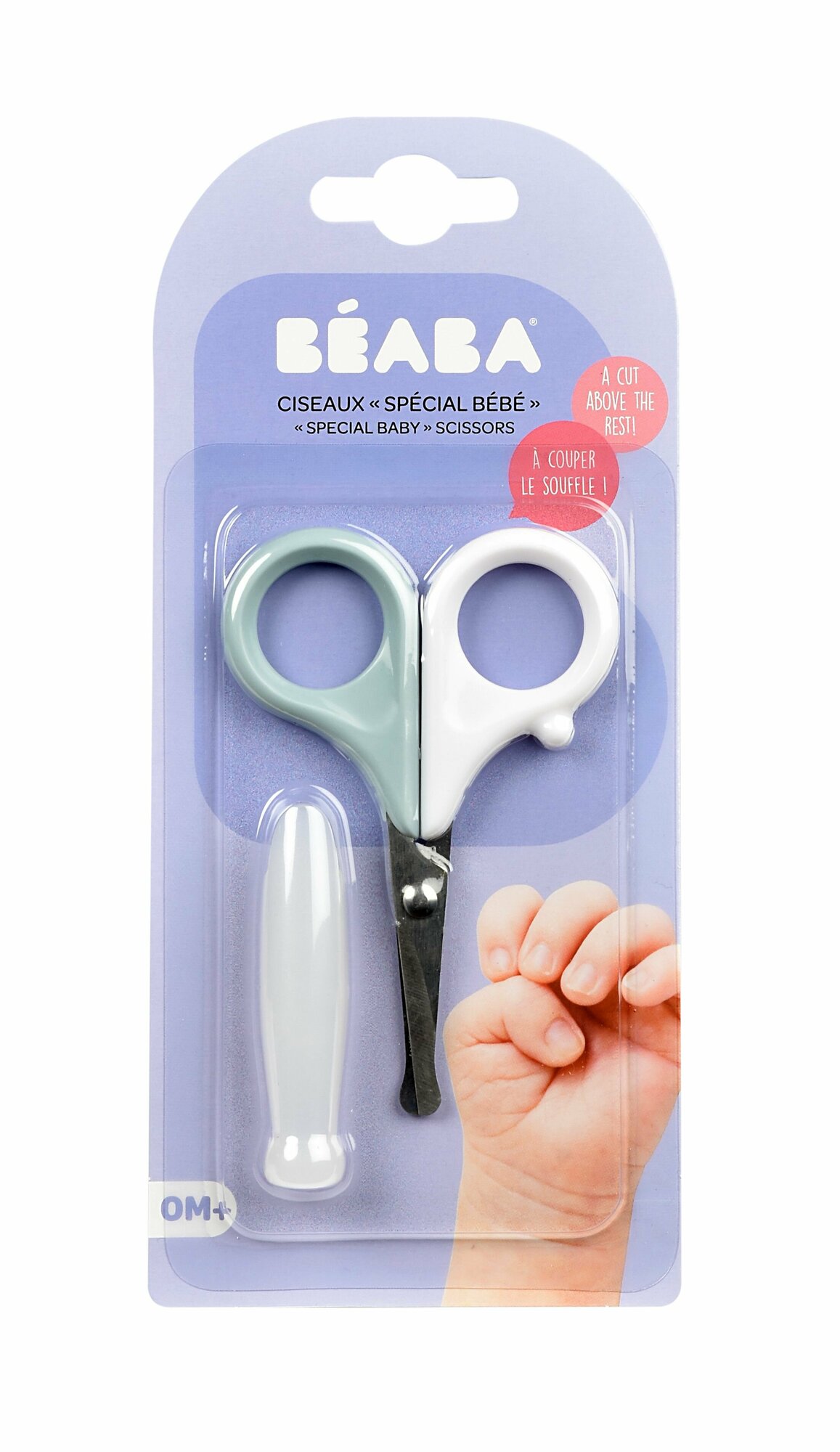 BEABA ножницы детские для ногтей с круглым наконечником и защитным колпачком, безопасные ножницы для новорожденных