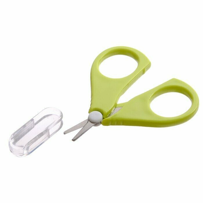 Купить Ножницы детские безопасные, маникюрные, с чехлом, от 0 мес., цвет зелёный