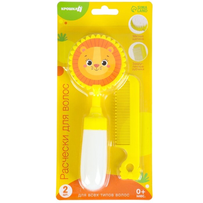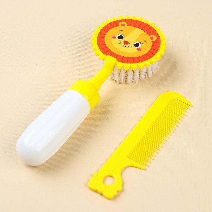 Купить Набор расчёсок с погремушкой «Львёнок», 2 предмета: расчёска с зубчиками + щётка