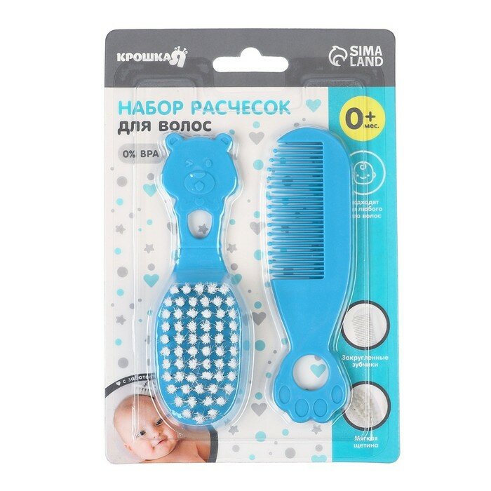 Набор для ухода за волосами: расческа и щетка, «Мишка», цвет голубой интересное: