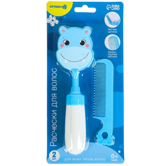 Купить Набор расчёсок с погремушкой «Бегемотик», 2 предмета: расчёска с зубчиками + щётка